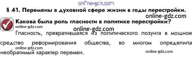 Готовые домашние задания по Истории за 10 класс Учебник Горинов, Данилов 2016 - Вопрос в начале параграфа §41. Перемены в духовной сфере жизни в годы перестройки 1