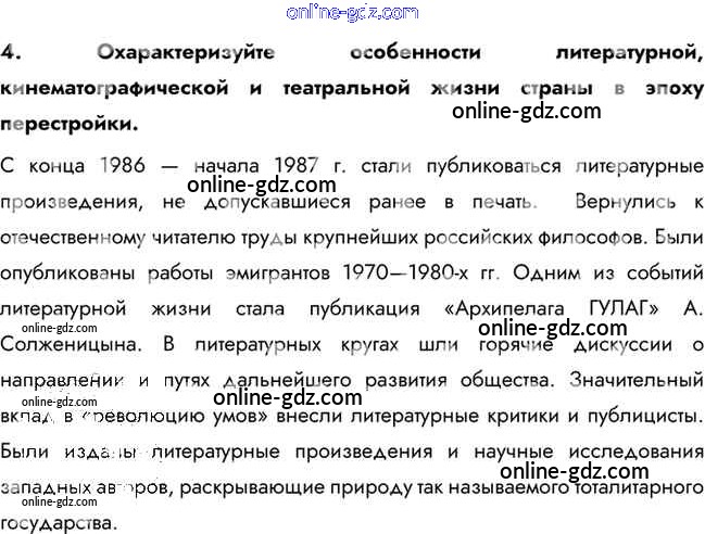 Готовые домашние задания по Истории за 10 класс Учебник Горинов, Данилов 2016 - Вопросы и задания для работы с текстом параграфа §41. Перемены в духовной сфере жизни в годы перестройки 4