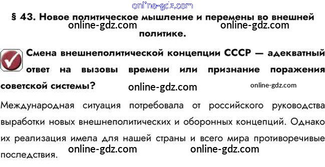 Готовые домашние задания по Истории за 10 класс Учебник Горинов, Данилов 2016 - Вопрос в начале параграфа §43. Новое политическое мышление и перемены во внешней политике 1