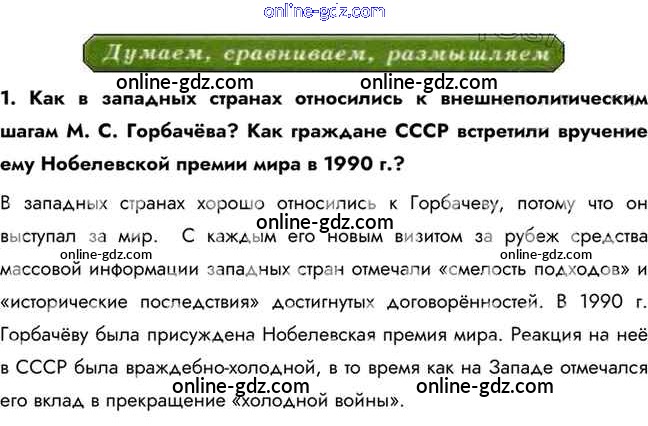 Готовые домашние задания по Истории за 10 класс Учебник Горинов, Данилов 2016 - Думаем, сравниваем, размышляем §43. Новое политическое мышление и перемены во внешней политике 1