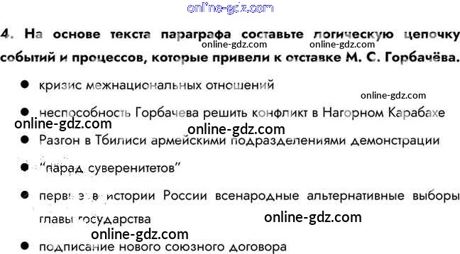 Готовые домашние задания по Истории за 10 класс Учебник Горинов, Данилов 2016 - Вопросы и задания для работы с текстом параграфа §44. Национальная политика и подъём национальных движений. Распад ССС 4