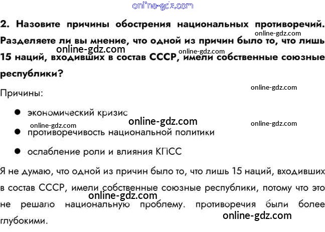 Готовые домашние задания по Истории за 10 класс Учебник Горинов, Данилов 2016 - Думаем, сравниваем, размышляем §44. Национальная политика и подъём национальных движений. Распад ССС 2