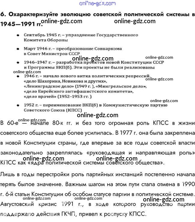 Готовые домашние задания по Истории за 10 класс Учебник Горинов, Данилов 2016 - Повторяем и делаем выводы. Глава 4 6