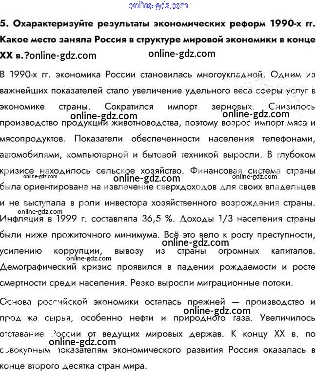Готовые домашние задания по Истории за 10 класс Учебник Горинов, Данилов 2016 - Вопросы и задания для работы с текстом параграфа §45. Российская экономика на пути к рынку 5