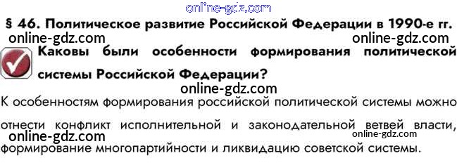 Готовые домашние задания по Истории за 10 класс Учебник Горинов, Данилов 2016 - Вопрос в начале параграфа §46. Политическое развитие Российской Федерации в 1990-е гг. 1