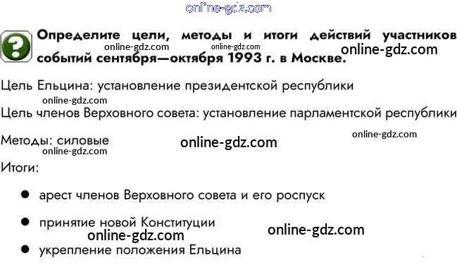 Готовые домашние задания по Истории за 10 класс Учебник Горинов, Данилов 2016 - Вопрос §46. Политическое развитие Российской Федерации в 1990-е гг. 1