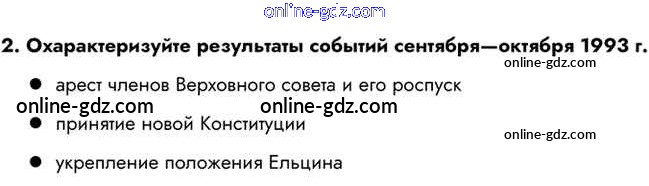 Готовые домашние задания по Истории за 10 класс Учебник Горинов, Данилов 2016 - Вопросы и задания для работы с текстом параграфа §46. Политическое развитие Российской Федерации в 1990-е гг. 2