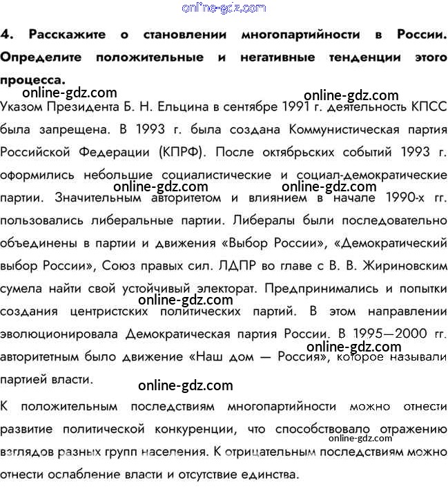 Готовые домашние задания по Истории за 10 класс Учебник Горинов, Данилов 2016 - Вопросы и задания для работы с текстом параграфа §46. Политическое развитие Российской Федерации в 1990-е гг. 4