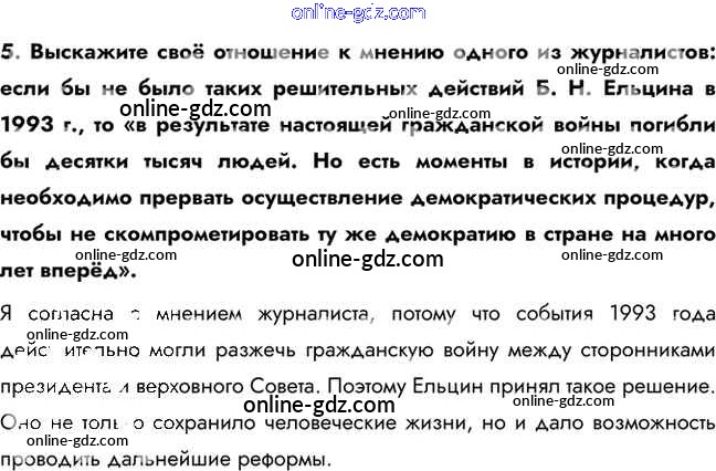 Готовые домашние задания по Истории за 10 класс Учебник Горинов, Данилов 2016 - Думаем, сравниваем, размышляем §46. Политическое развитие Российской Федерации в 1990-е гг. 5