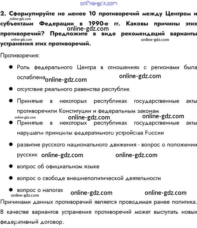 Готовые домашние задания по Истории за 10 класс Учебник Горинов, Данилов 2016 - Думаем, сравниваем, размышляем Межнациональные отношения и национальная политика в 1990-е гг. 2