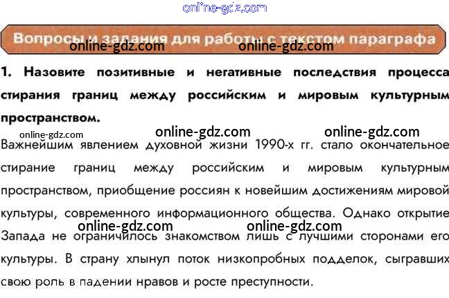 Готовые домашние задания по Истории за 10 класс Учебник Горинов, Данилов 2016 - Вопросы и задания для работы с текстом параграфа §47. Духовная жизнь страны в 1990-е гг. 1