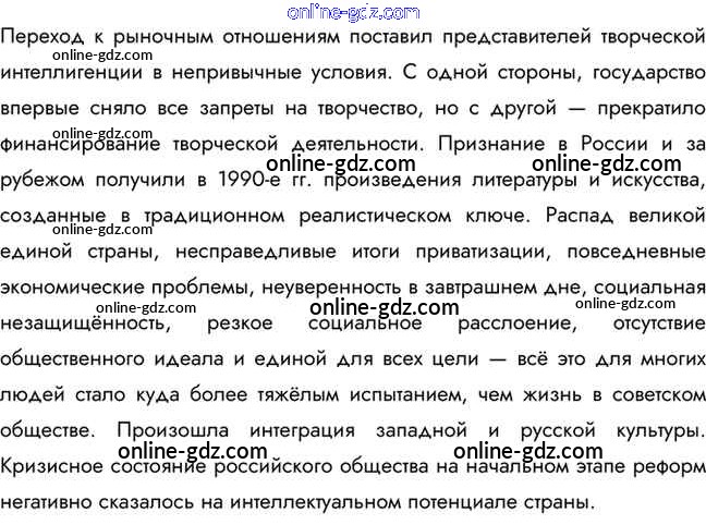 Готовые домашние задания по Истории за 10 класс Учебник Горинов, Данилов 2016 - Вопросы и задания для работы с текстом параграфа §47. Духовная жизнь страны в 1990-е гг. 2