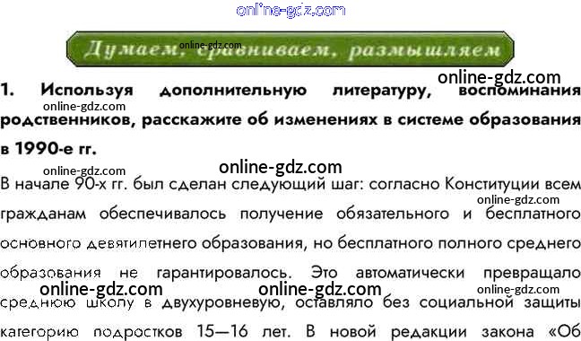 Готовые домашние задания по Истории за 10 класс Учебник Горинов, Данилов 2016 - Думаем, сравниваем, размышляем §47. Духовная жизнь страны в 1990-е гг. 1