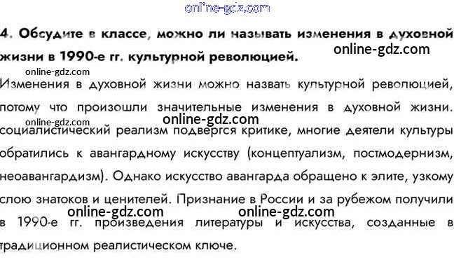 Готовые домашние задания по Истории за 10 класс Учебник Горинов, Данилов 2016 - Думаем, сравниваем, размышляем §47. Духовная жизнь страны в 1990-е гг. 4