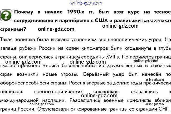 Готовые домашние задания по Истории за 10 класс Учебник Горинов, Данилов 2016 - Вопрос §48. Геополитическое положение и внешняя политика в 1990-е гг. 1