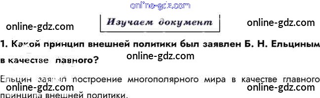 Готовые домашние задания по Истории за 10 класс Учебник Горинов, Данилов 2016 - Изучаем документ §48. Геополитическое положение и внешняя политика в 1990-е гг. 1