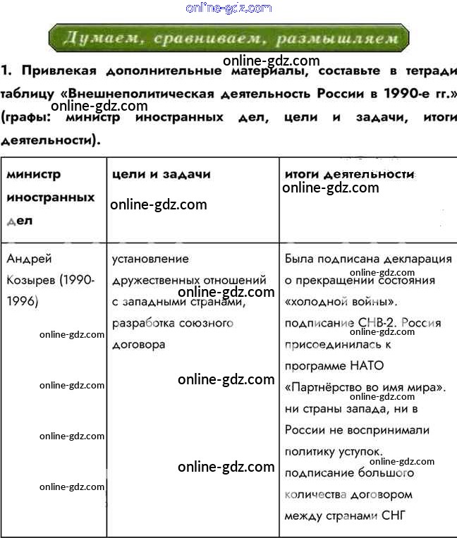 Готовые домашние задания по Истории за 10 класс Учебник Горинов, Данилов 2016 - Думаем, сравниваем, размышляем §48. Геополитическое положение и внешняя политика в 1990-е гг. 1