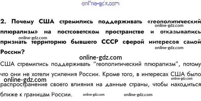 Готовые домашние задания по Истории за 10 класс Учебник Горинов, Данилов 2016 - Думаем, сравниваем, размышляем §48. Геополитическое положение и внешняя политика в 1990-е гг. 2