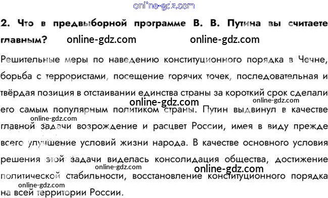 Готовые домашние задания по Истории за 10 класс Учебник Горинов, Данилов 2016 - Вопросы и задания для работы с текстом параграфа §49. Политическая жизнь России в начале XXI 2