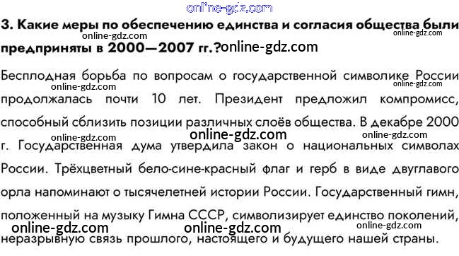 Готовые домашние задания по Истории за 10 класс Учебник Горинов, Данилов 2016 - Вопросы и задания для работы с текстом параграфа §49. Политическая жизнь России в начале XXI 3