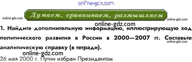 Готовые домашние задания по Истории за 10 класс Учебник Горинов, Данилов 2016 - Думаем, сравниваем, размышляем §49. Политическая жизнь России в начале XXI 1