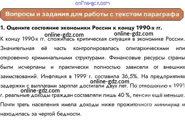 Готовые домашние задания по Истории за 10 класс Учебник Горинов, Данилов 2016 - Вопросы и задания для работы с текстом параграфа §50. Экономика России в начале XXI в. 1