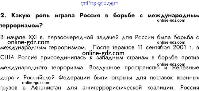 Готовые домашние задания по Истории за 10 класс Учебник Горинов, Данилов 2016 - Вопросы и задания для работы с текстом параграфа §52. Внешняя политика России в начале XXI в. 2