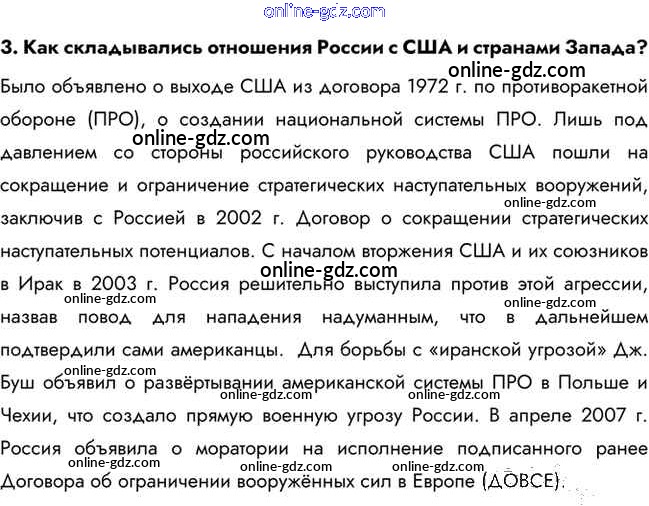 Готовые домашние задания по Истории за 10 класс Учебник Горинов, Данилов 2016 - Вопросы и задания для работы с текстом параграфа §52. Внешняя политика России в начале XXI в. 3