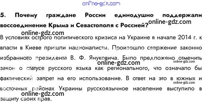 Готовые домашние задания по Истории за 10 класс Учебник Горинов, Данилов 2016 - Думаем, сравниваем, размышляем §53. Россия в 2008—2014 гг. 5