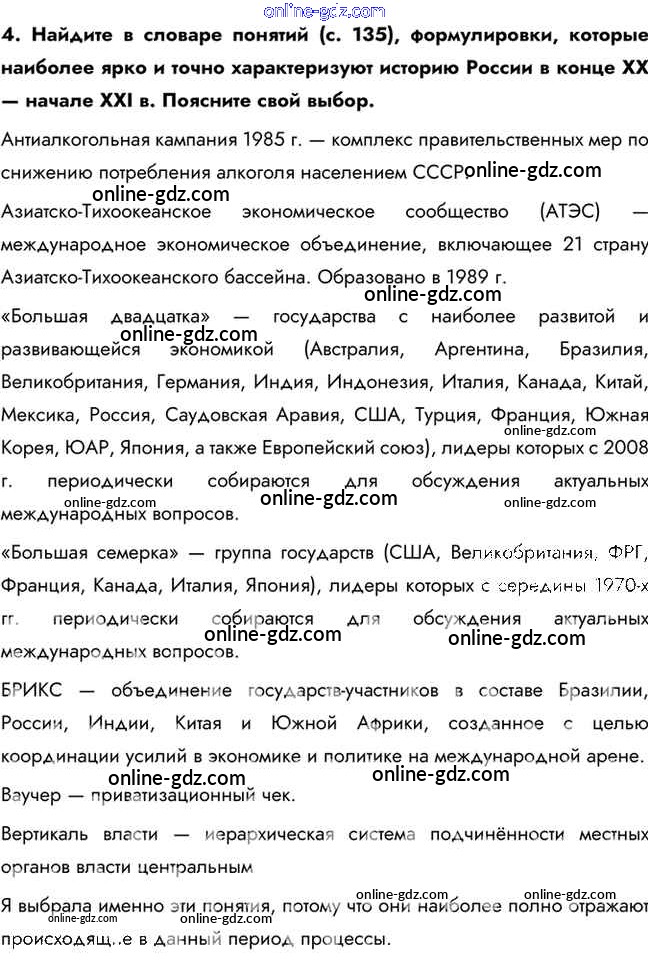 Готовые домашние задания по Истории за 10 класс Учебник Горинов, Данилов 2016 - Повторяем и делаем выводы. Глава 5 4