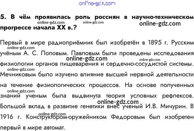 Готовые домашние задания по Истории за 11 класс Учебник Загладин, Петров Инновационная школа Базовый уровень 2014 - Вопросы и задания §1. Научно-технический прогресс и новый этап индустриального развития 5