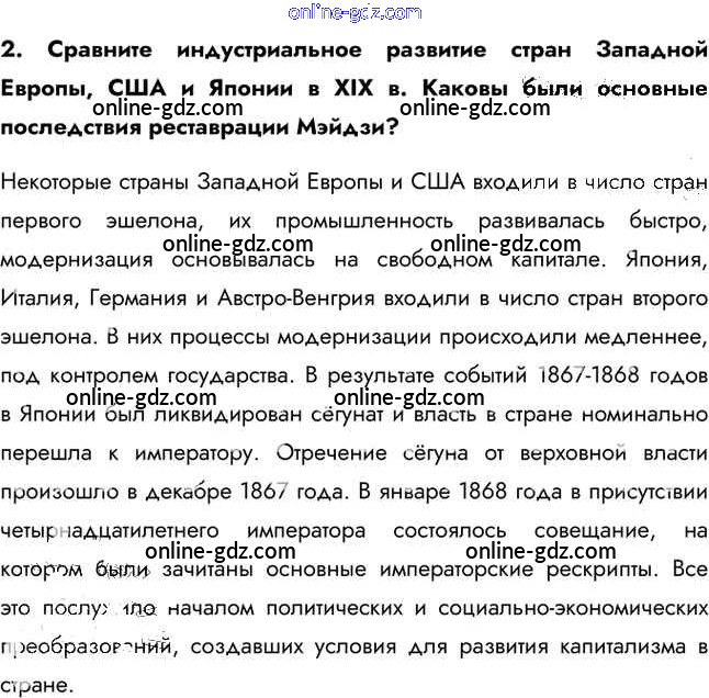 Готовые домашние задания по Истории за 11 класс Учебник Загладин, Петров Инновационная школа Базовый уровень 2014 - Вопросы в начале параграфа §2. Модернизация в странах Европы, США и Японии 2