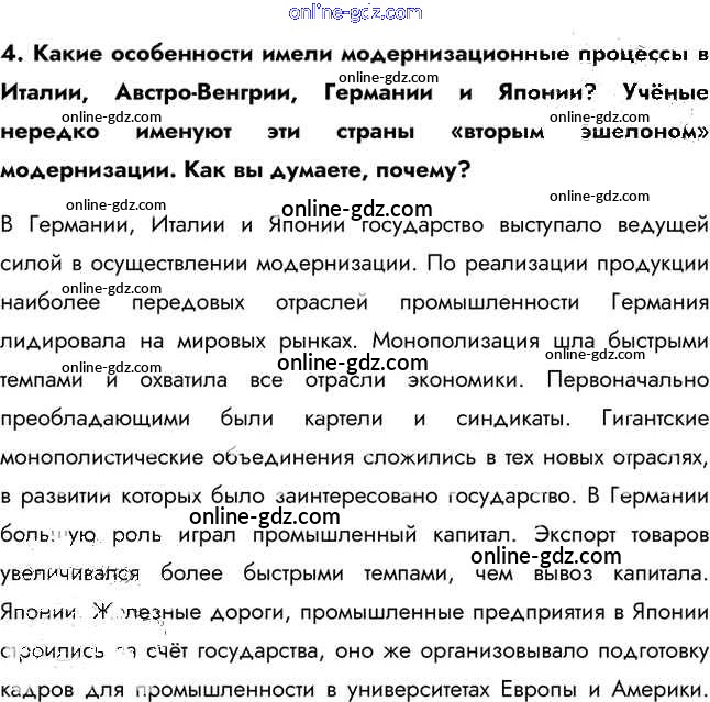 Готовые домашние задания по Истории за 11 класс Учебник Загладин, Петров Инновационная школа Базовый уровень 2014 - Вопросы и задания §2. Модернизация в странах Европы, США и Японии 4