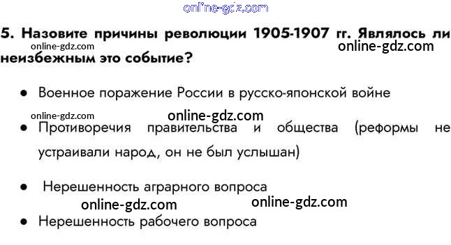 Готовые домашние задания по Истории за 11 класс Учебник Загладин, Петров Инновационная школа Базовый уровень 2014 - Вопросы и задания §4. Кризис империи: русско-японская война и революция 1905-1907 гг. 5
