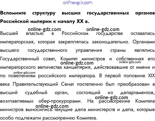 Готовые домашние задания по Истории за 11 класс Учебник Загладин, Петров Инновационная школа Базовый уровень 2014 - Вопросы в начале параграфа §5. Политическая жизнь страны после Манифеста 17 октября 1905 г. 1