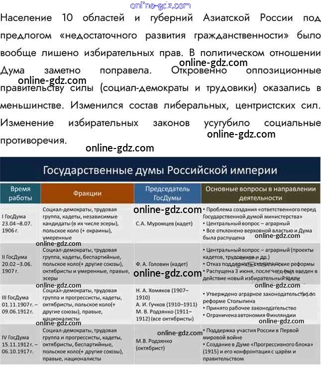 Готовые домашние задания по Истории за 11 класс Учебник Загладин, Петров Инновационная школа Базовый уровень 2014 - Вопросы и задания §6. Третьеиюньская монархия и реформы П.А. Столыпина 3
