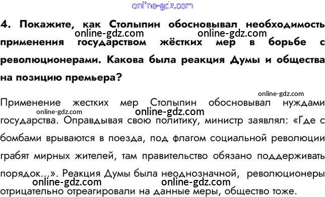 Готовые домашние задания по Истории за 11 класс Учебник Загладин, Петров Инновационная школа Базовый уровень 2014 - Вопросы и задания §6. Третьеиюньская монархия и реформы П.А. Столыпина 4