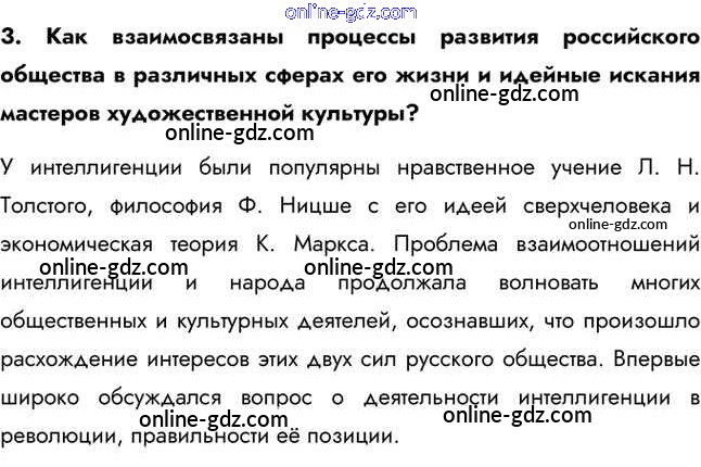 Готовые домашние задания по Истории за 11 класс Учебник Загладин, Петров Инновационная школа Базовый уровень 2014 - Вопросы и задания §7. Культура России в конце XIX — начале XX в. 3