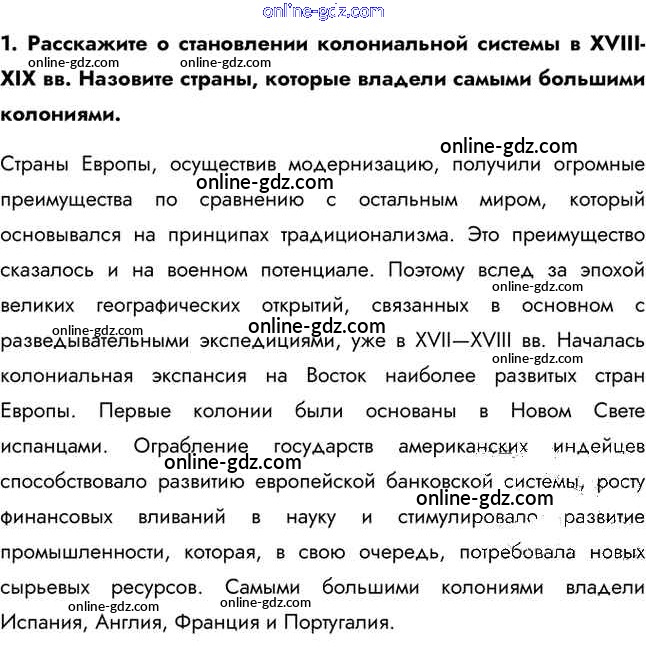 Готовые домашние задания по Истории за 11 класс Учебник Загладин, Петров Инновационная школа Базовый уровень 2014 - Вопросы в начале параграфа §8. Колониализм и обострение противоречий мирового развития в начале XX в. 1