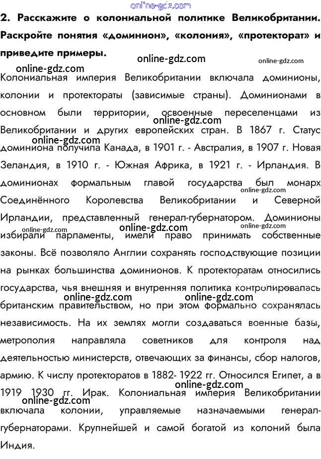 Готовые домашние задания по Истории за 11 класс Учебник Загладин, Петров Инновационная школа Базовый уровень 2014 - Вопросы и задания §8. Колониализм и обострение противоречий мирового развития в начале XX в. 2