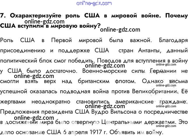 Готовые домашние задания по Истории за 11 класс Учебник Загладин, Петров Инновационная школа Базовый уровень 2014 - Вопросы и задания §10. Первая мировая война 7