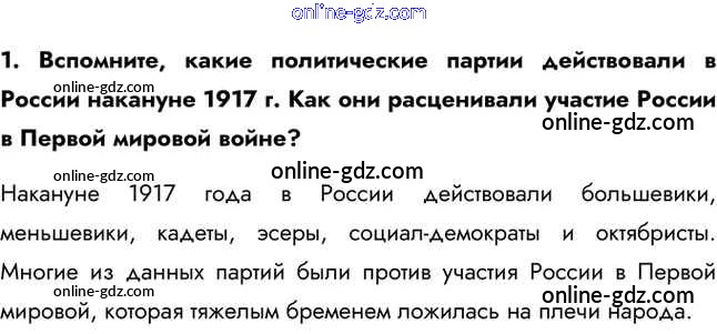 Готовые домашние задания по Истории за 11 класс Учебник Загладин, Петров Инновационная школа Базовый уровень 2014 - Вопросы в начале параграфа §11. Февральская революция в России 1917 г. 1