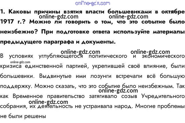 Готовые домашние задания по Истории за 11 класс Учебник Загладин, Петров Инновационная школа Базовый уровень 2014 - Вопросы и задания §12. Переход власти к партии большевиков 1
