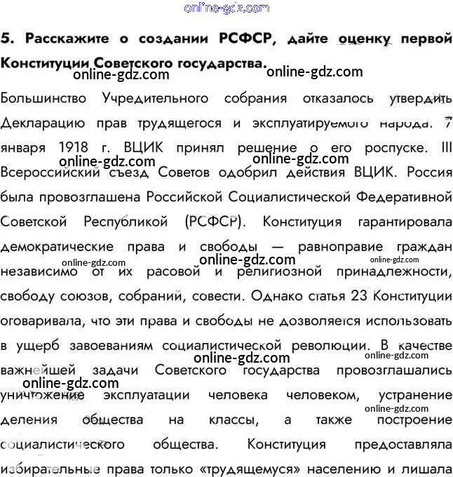 Готовые домашние задания по Истории за 11 класс Учебник Загладин, Петров Инновационная школа Базовый уровень 2014 - Вопросы и задания §12. Переход власти к партии большевиков 5