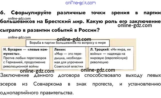 Готовые домашние задания по Истории за 11 класс Учебник Загладин, Петров Инновационная школа Базовый уровень 2014 - Вопросы и задания §12. Переход власти к партии большевиков 6