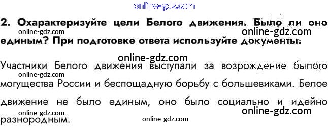 Готовые домашние задания по Истории за 11 класс Учебник Загладин, Петров Инновационная школа Базовый уровень 2014 - Вопросы и задания §13. Гражданская война и интервенция 2