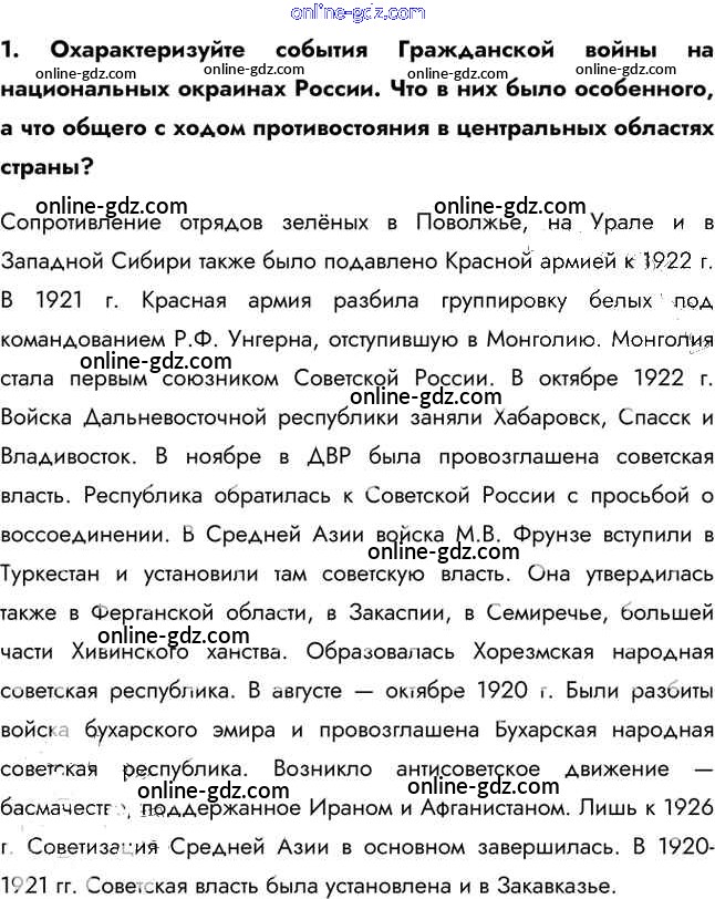 Готовые домашние задания по Истории за 11 класс Учебник Загладин, Петров Инновационная школа Базовый уровень 2014 - Вопросы и задания §14. Завершение Гражданской войны и образование СССР 1