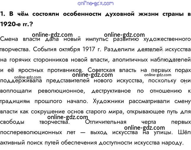 Готовые домашние задания по Истории за 11 класс Учебник Загладин, Петров Инновационная школа Базовый уровень 2014 - Вопросы и задания §16. Культура Страны Советов в 1917-1922 гг. 1