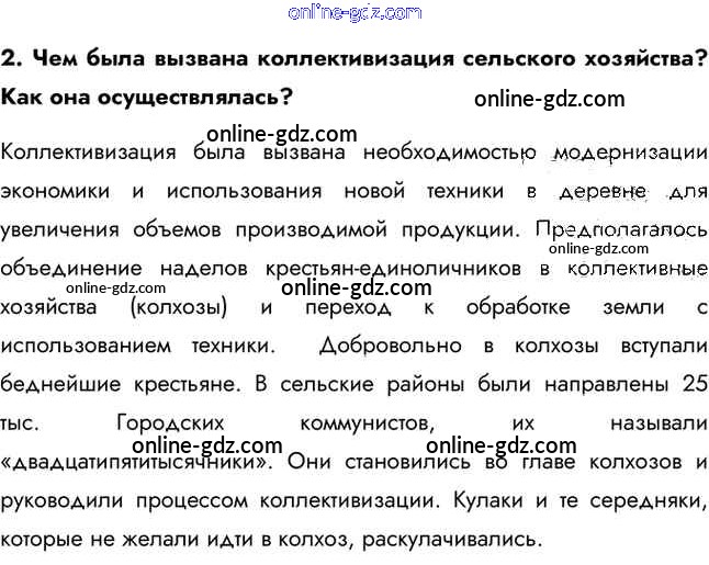 Готовые домашние задания по Истории за 11 класс Учебник Загладин, Петров Инновационная школа Базовый уровень 2014 - Вопросы и задания §17. Советская модернизация экономики. Становление советской культуры 2