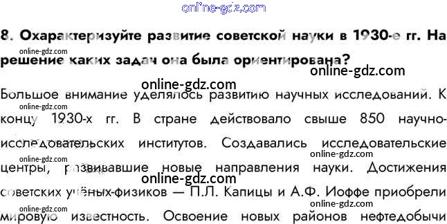 Готовые домашние задания по Истории за 11 класс Учебник Загладин, Петров Инновационная школа Базовый уровень 2014 - Вопросы и задания §17. Советская модернизация экономики. Становление советской культуры 8